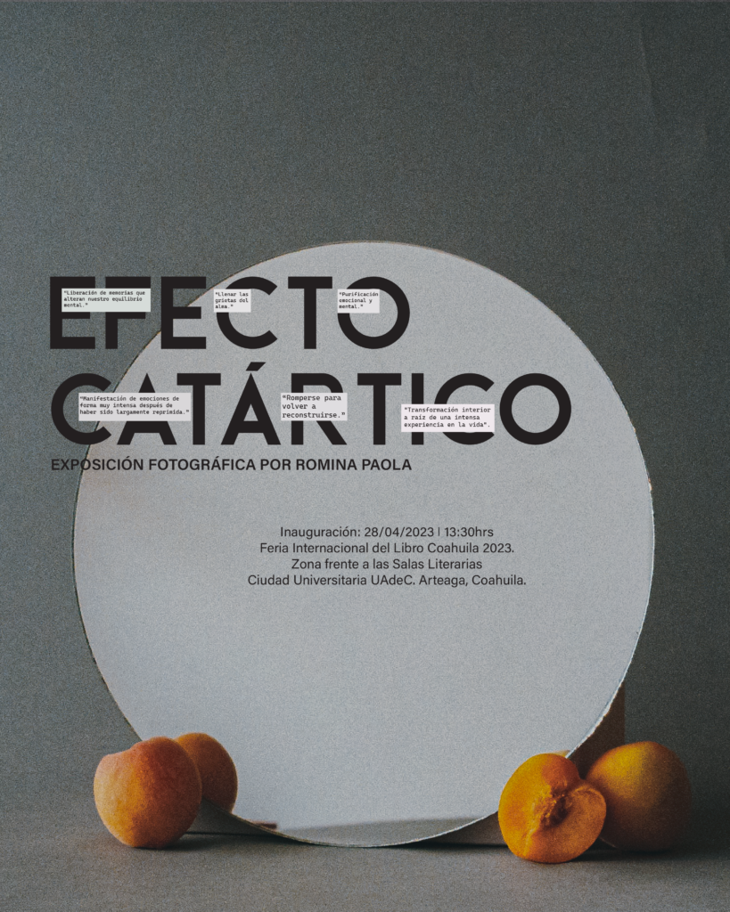 La exposición fotográfica Efecto Catártico forma parte de las actividades de la Feria Internacional del Libro Coahuila en su 25 aniversario. Este año el tema principal de la feria es «Salud mental: Artes, Literatura y los laberintos de la mente»